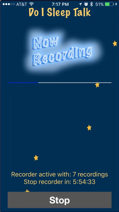 Please Note: Do I Sleep Talk should be the last application that you use at night that requires the use of audio resources on your device. For instance, you would not want to use an application that plays, movies or podcasts, and you would not want to use your music player after activating Do I Sleep Talk as it may cause Do I Sleep Talk to not record properly.