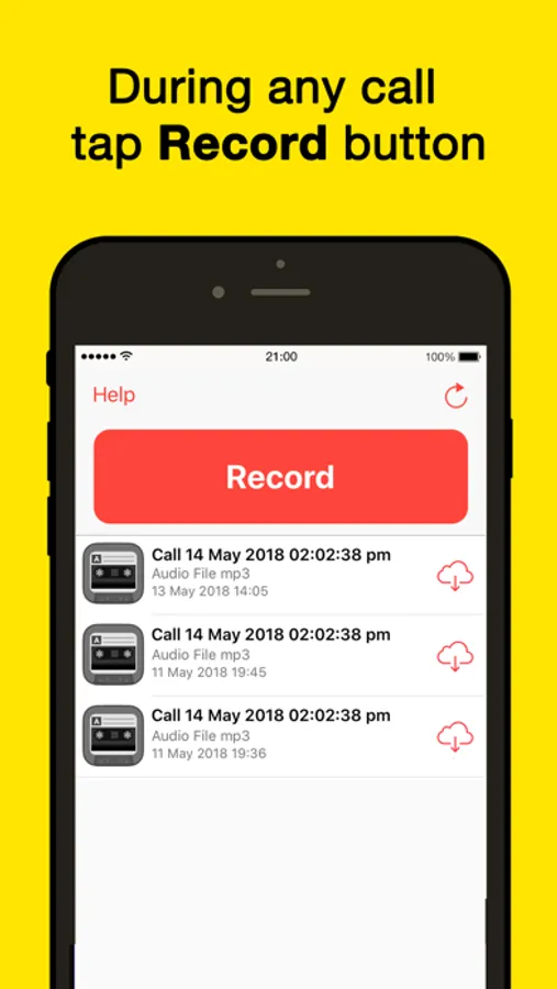 Record incoming and outgoing phone calls. To record a phone call you must facilitate a 3-way conference call. The third "caller" is our recording line that will save your phone call. It is not possible to record phone calls using the built-in microphone on your iPhone.