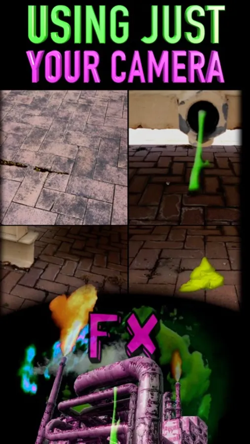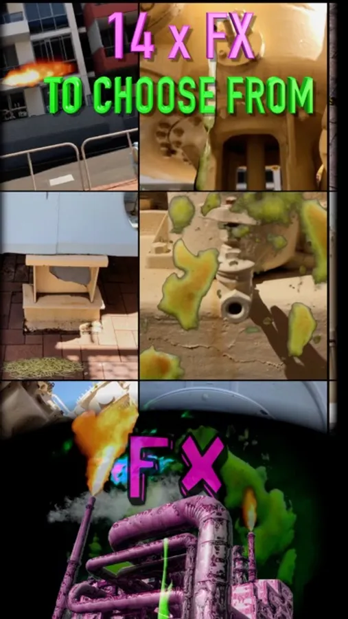 The app uses incredible Augmented Reality Technology (AR). This means that once the FX are locked into position in 3D, while filming the LIVE movie FX you can pan your camera up, down, at any angle, walk closer or further back & the FX stays in its perfect lifelike position.