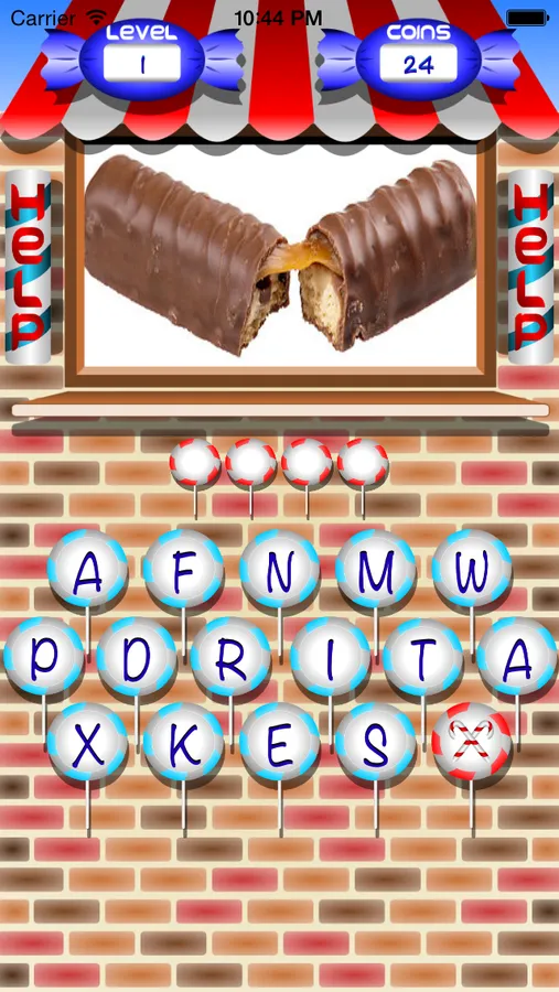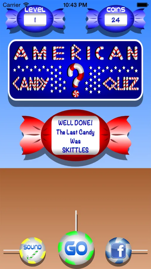 Progress levels and earn coins for every candy you correctly name, use the coins to buy letters when you are stuck or post a picture of the candy directly to Facebook and ask your friends for help.