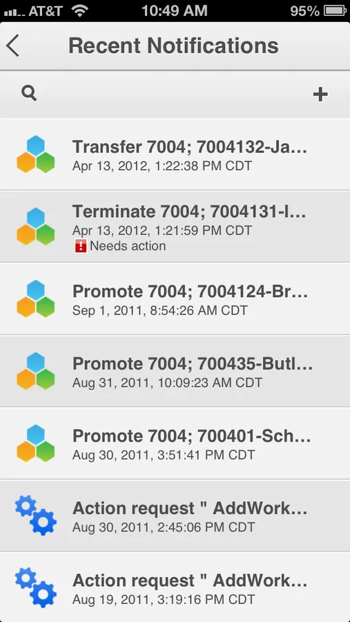 Notifications include work flow items and application messages that are proactively sent to users for review and action. Simply select a notification, review core information and "other" details included for decision-making and then take action. For example, approve or reject an approval request and move your defined business process on to the next step.