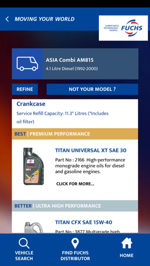 The resulting recommendations assist in fast and accurate retail lubricant selection for a comprehensive range of engines, transmissions, differentials and hydraulics across 13 different categories of automotive vehicles, marine craft, agricultural machinery and industrial equipment.