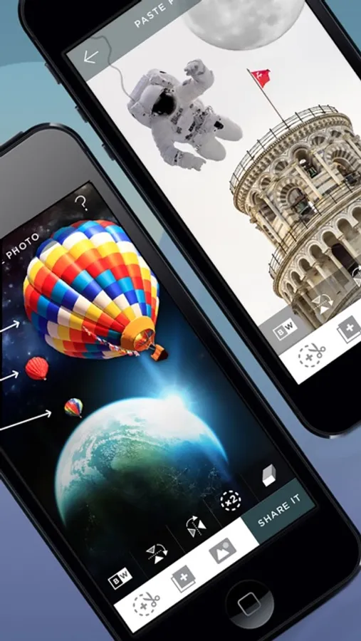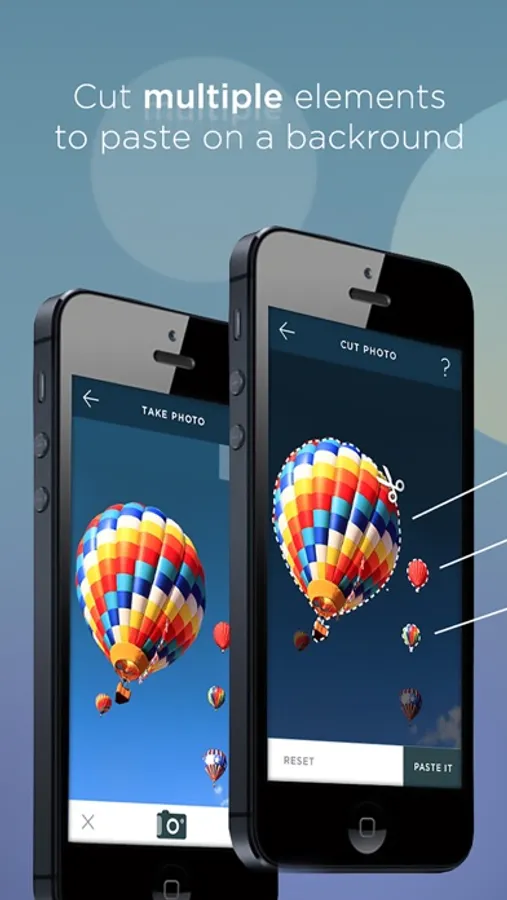 The unique Cut and Paste photos app that allows you to cut from multiple photos into one and merge them together.