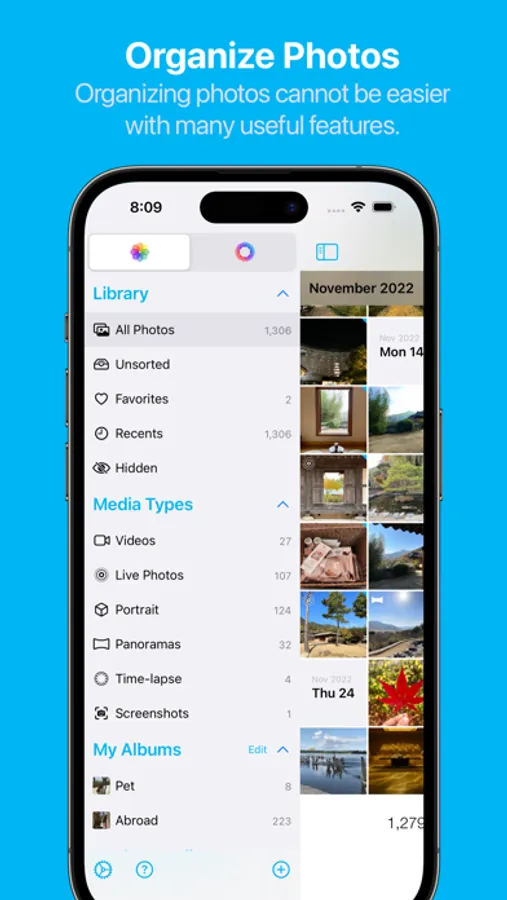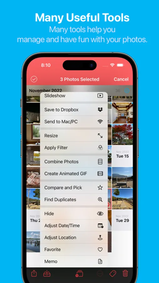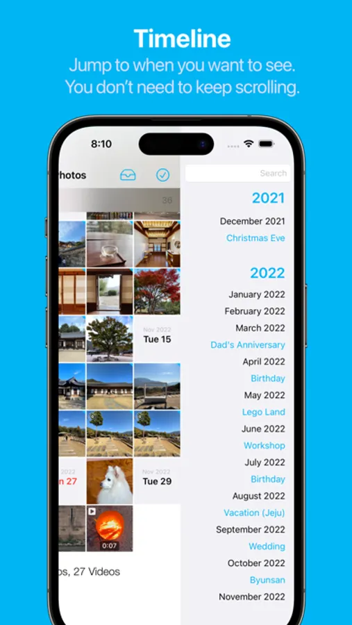 Tag, Map, Timeline and many great features will help you search, manage, edit and share your photos/videos.