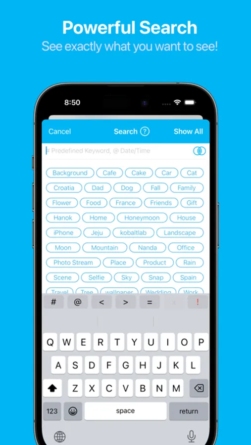 - Powerful Search (User Keywords, Predefined Keywords, Date/Time, Size)