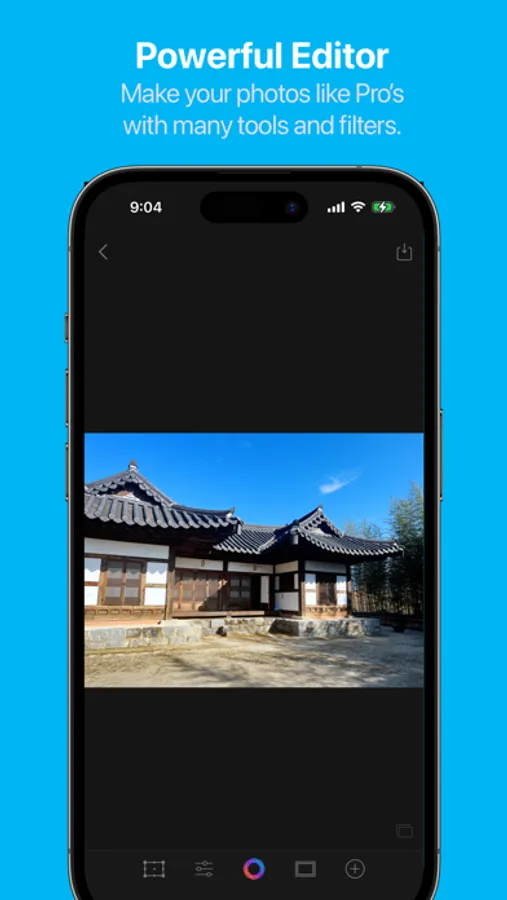 Crop/Rotate/Flip, Adjust, Filters, Frame, Text, Sticker, Blur, Overlay, Draw, Shape Mask