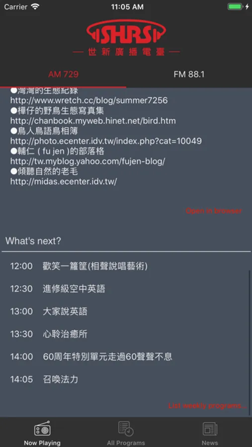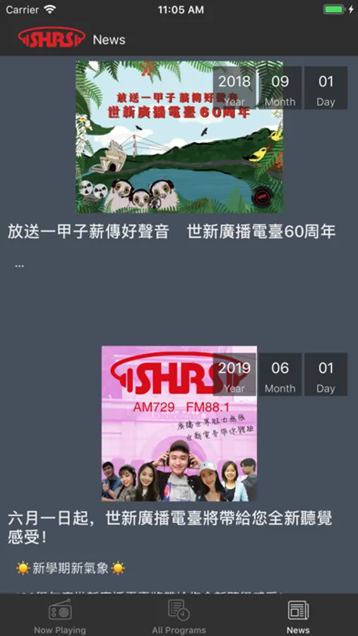 The Shih Hsin Radio Station aired officially in 1958 on 1st of September. It was the first radio station established by a school and also the only one that consists of both carrier frequency, AM & FM. At present, the radio station is also the first to provide online broadcast and smart phone radio app for mobile platform. Through the use of this app, we can listen to radio anytime, anywhere at our convenience.