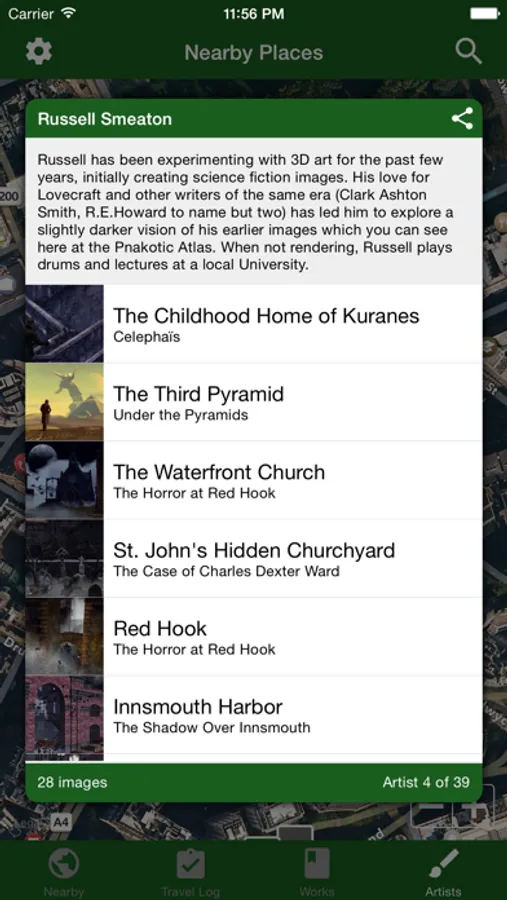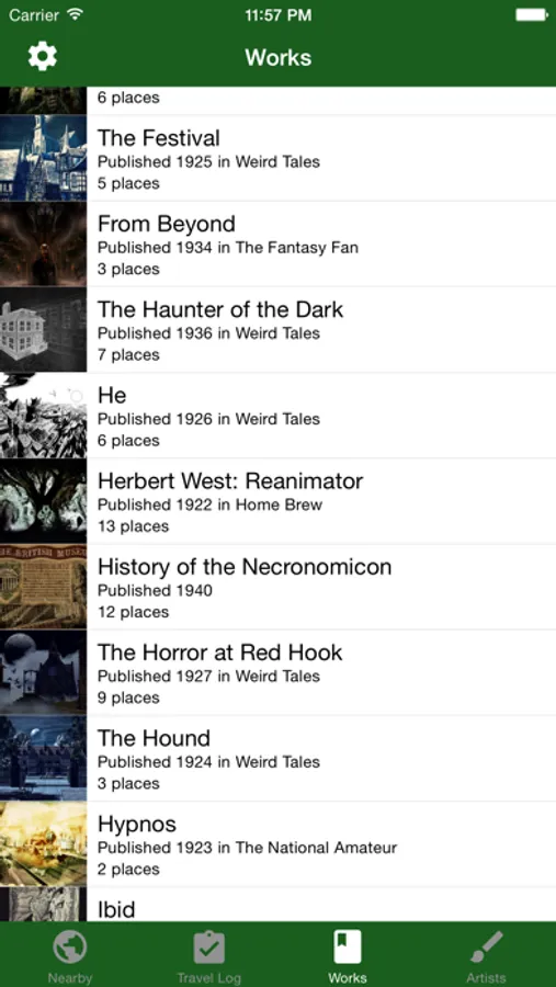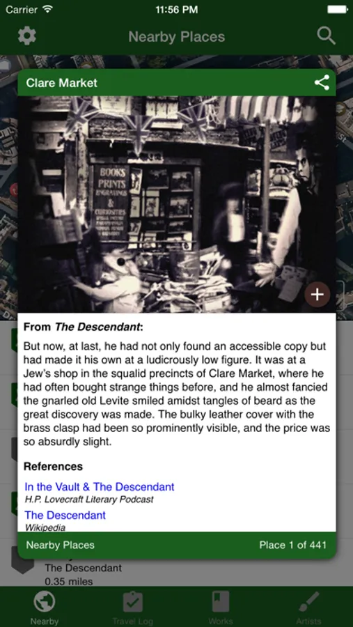 Use the Atlas to plan your next trip to the Plateau of Leng or look up the location of of the ill-fated Antarctic base camp during your next reading of "At the Mountains of Madness". Log your visit to Dunwich in the built-in Travel Log, and use the Nearby Places to find eldritch sites around you.