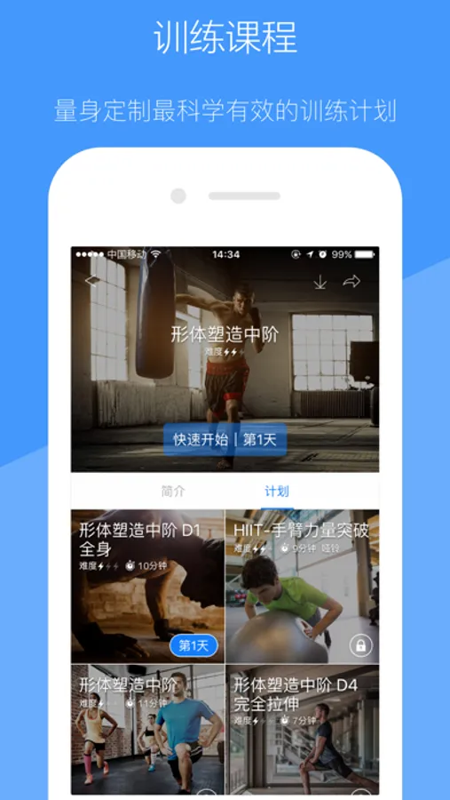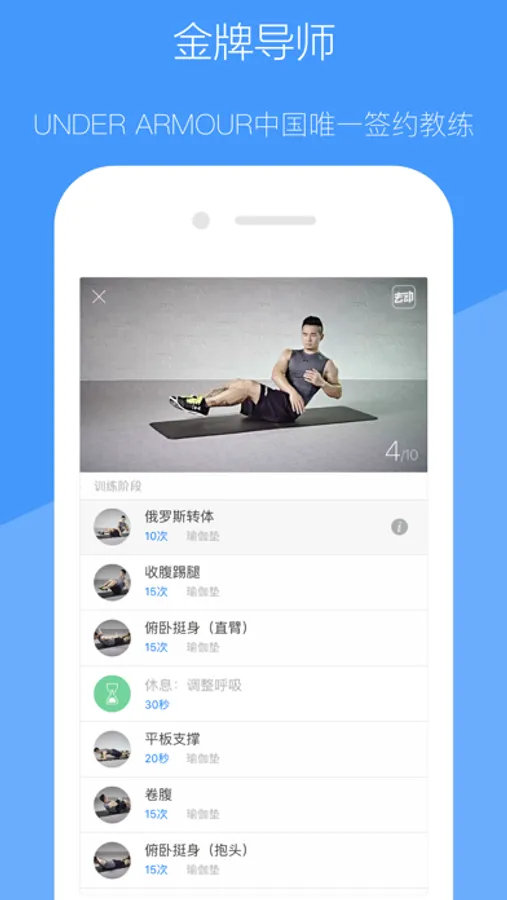 -随时随地开启训练模式,课间、工作间隙、电视广告时间,训练课程一一针对,打造自己的私人健身房