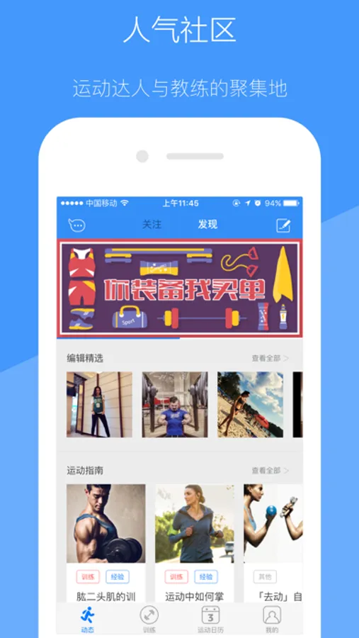 在这里,有超过1000位认证教练和运动达人陪伴你左右,传授经验、答疑解惑、相互激励。和兴趣相投、热爱运动的型男美女,一起相约运动。