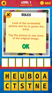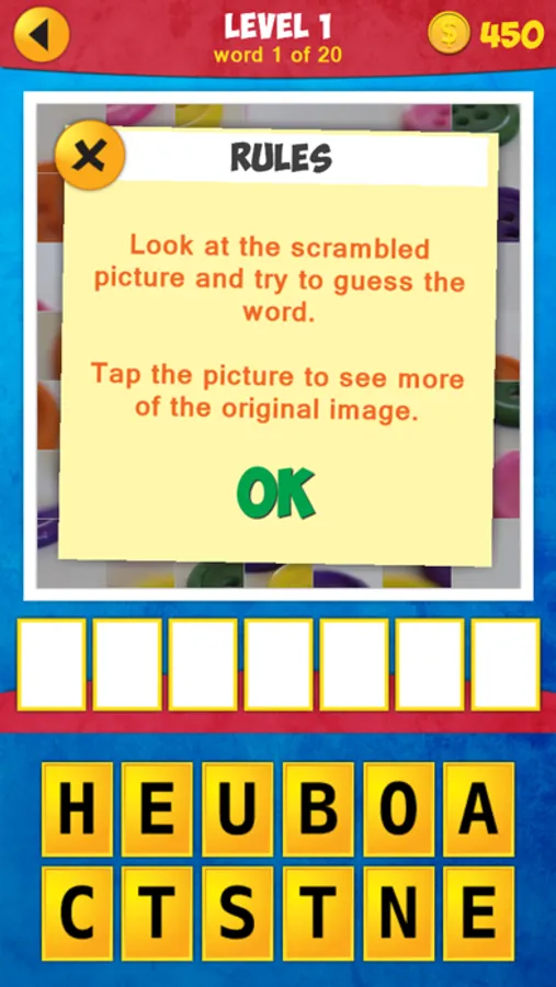 Look at the scrambled picture puzzle and try to guess the word. Tap on the picture tiles to switch their positions and reveal a portion of the original image. Look at the picture and guess the word!