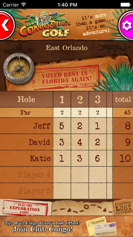 It's the best way to keep your mini golf score at Congo River Golf! Play award-winning miniature golf at Congo River Golf. With 8 locations in Florida to choose from, there's an adventure for everyone. It's fun for the whole family!