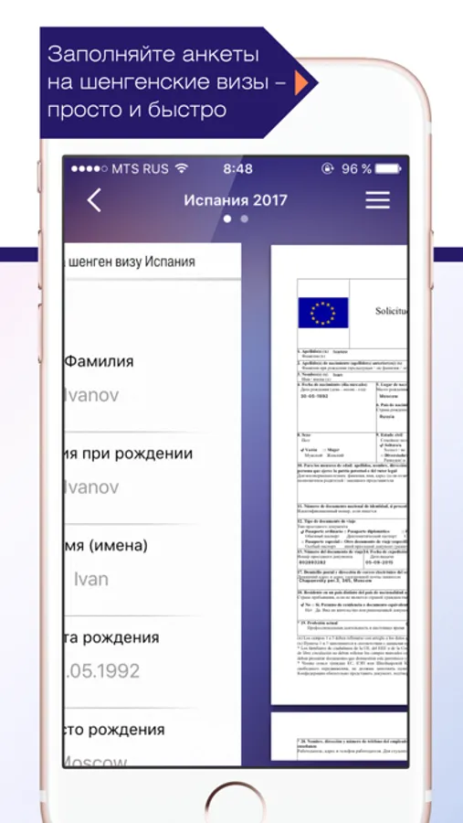 С помощью Архивариус стало удобно оформлять анкеты на получение виз в зону Шенген. Заполните в программе один раз все данные, и Вы получите аккуратный заполненный бланк анкеты на визу в выбранную страну. В следующий раз, когда Вам понадобится оформить анкету, все ваши данные заполнятся автоматически. Вам останется указать только несколько моментов: срок, место пребывания в новой стране, данные последней визы. Соглашение о персональных данных тоже заполняются автоматически.