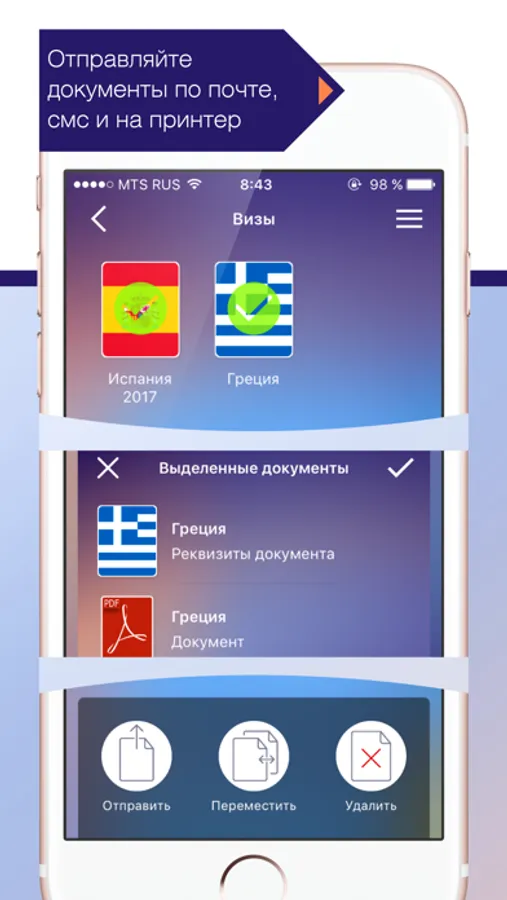 Документы из вашего архива можно пересылать по почте, СМС, отправить на принтер или во все популярные мессенджеры.