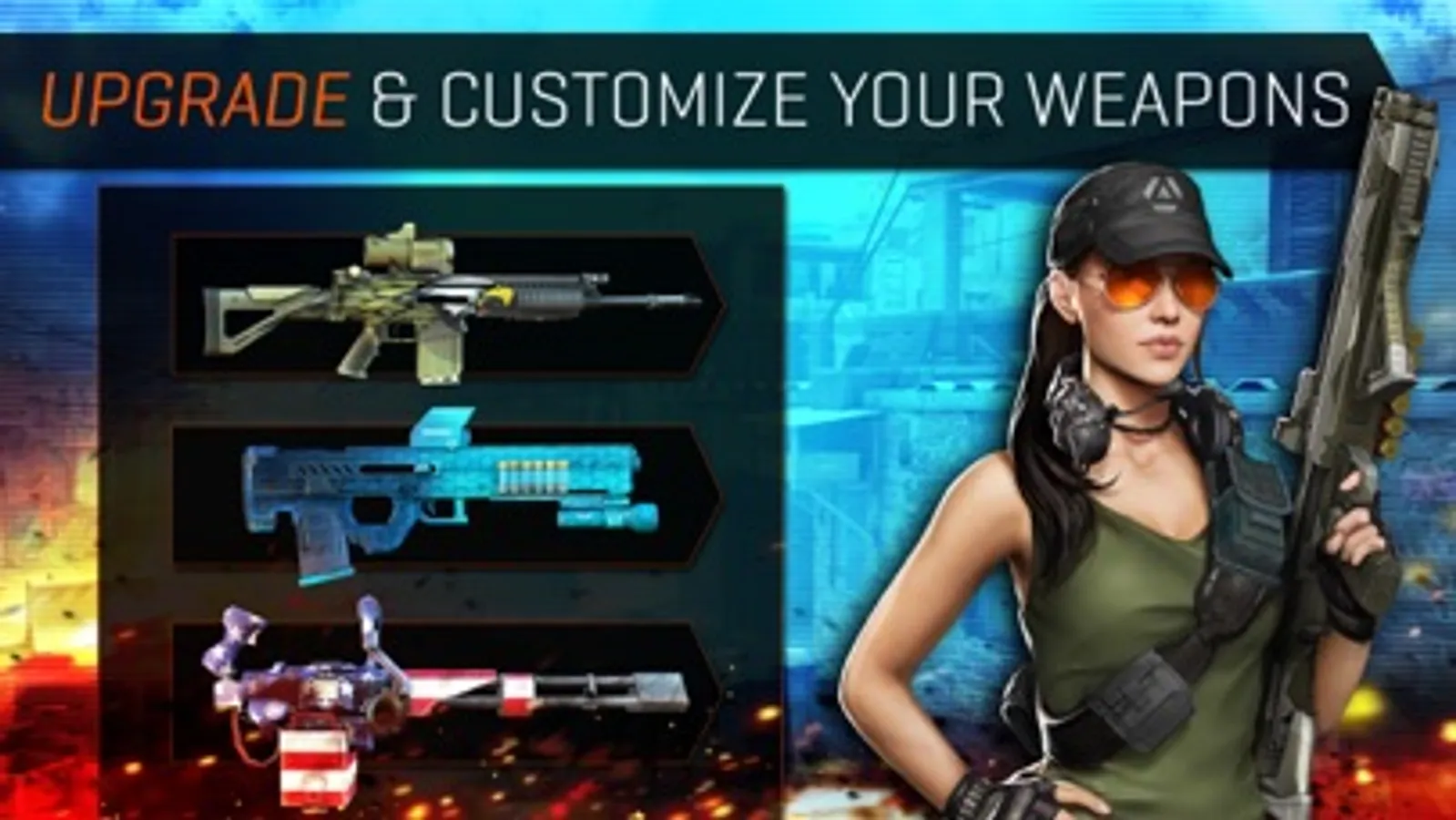 Maximize your firepower with multiple, upgradable weapon classes including sniper rifles, assault rifles, shotguns and machine guns. Utilize special gear such as drones, grenades and RPGs.