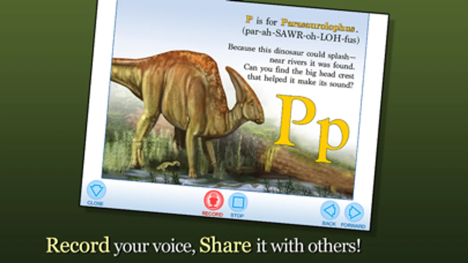 Learn about dinosaurs with duck-bills, club tails, spiked bodies and more in this one of a kind Alphabet of Dinosaurs storybook app. From Ankylosaurus to Zigongosaurus, and everything in between, there is so much for kids to learn about this prehistoric world.