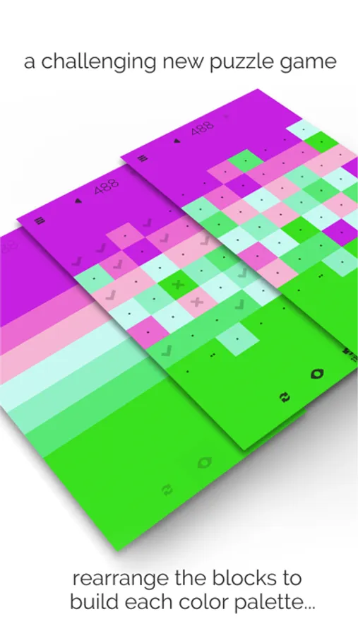 Your objective is simple, yet deceivingly complex: rearrange the blocks according to a palette of colors that blend together in harmony. Blocks may only move horizontally or vertically and each block must use up all its moves. Sophisticated color palettes range from simple boards with 3 colors up to incredibly challenging 10-color boards. As levels increase, so does the intricacy and beauty of each color palette.