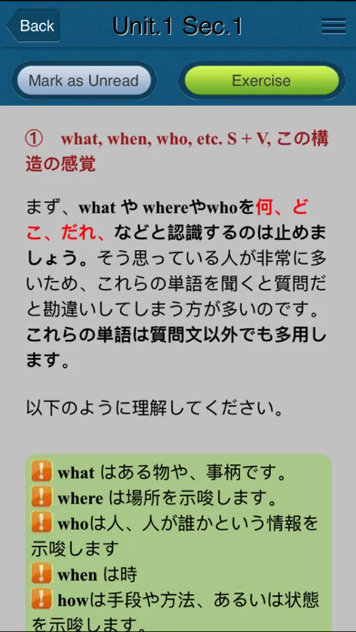 しかも、Review Exercise機能を使えば、ワンタップ、ワンシェイクで学習済みの範囲からランダムに問題を選び出し復習させます。