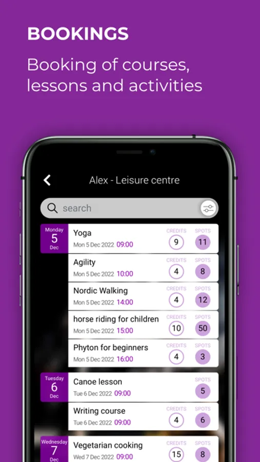 - in-app booking of activities