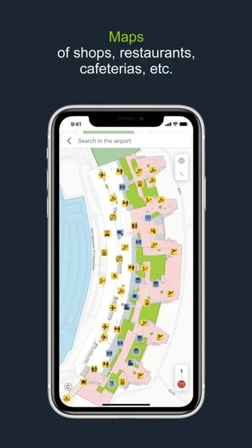 • Move around the airport calculating routes from one point to another with the AenaMaps service. Available at A.S. Madrid-Barajas, J.T.Barcelona-El Prat, Málaga-Costa del Sol and Alicante-Elche Miguel Hernández