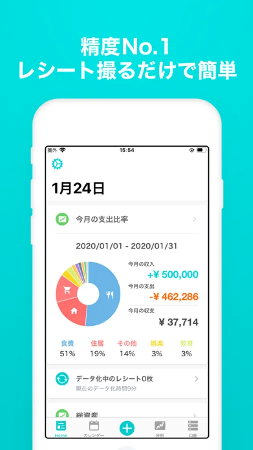 家計簿アプリで唯一レシートをオペレーターが入力代行!だからお金の管理が簡単で正確!