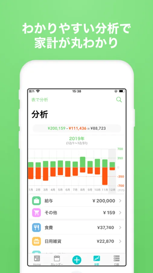 ■分析も簡単でわかりやすい。家計簿をグラフで見える化して節約!