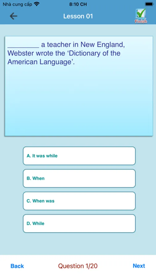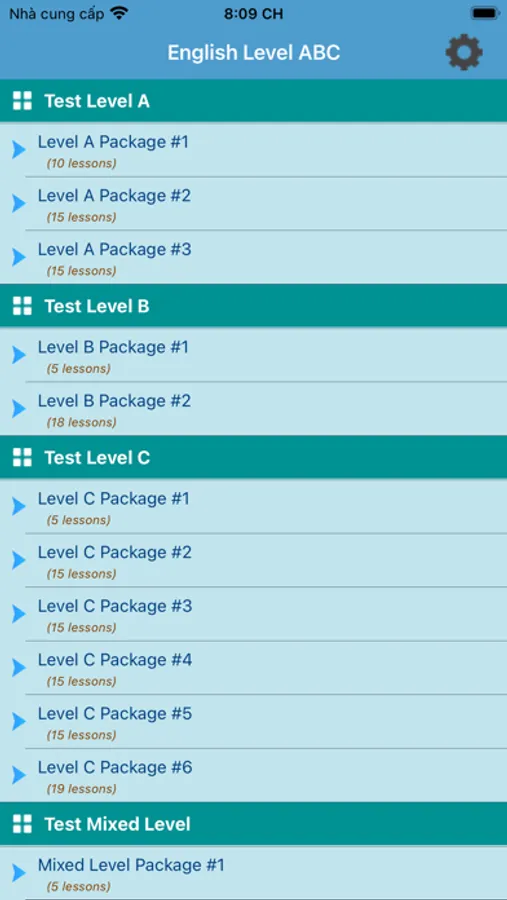 Test your English skills and receive a grade in level A, B, C, Mixed Levels, or Grammar levels, and track your progress with ease. This app allows you to test and improve your English knowledge anytime, anywhere.