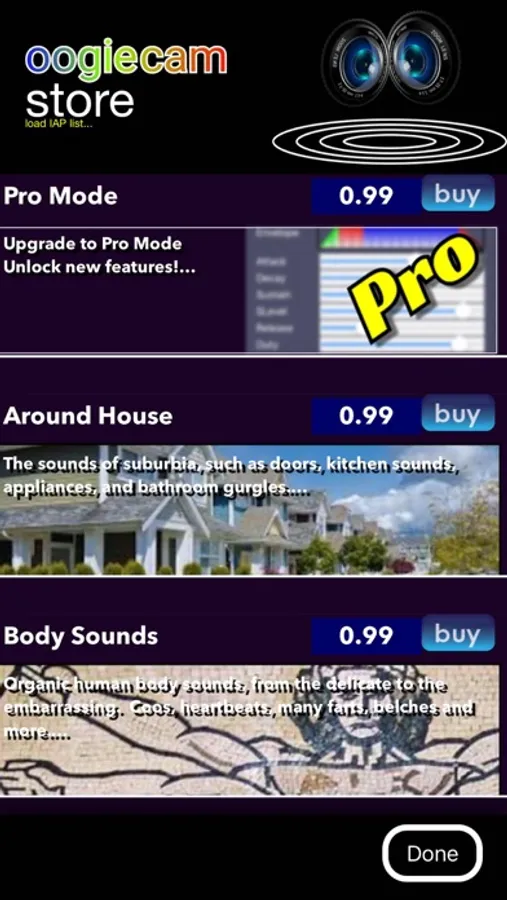 OOgieCam comes two ColorPacks with 32 built-in sounds each and