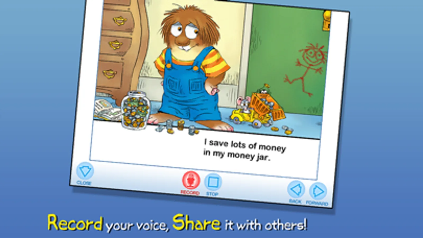 Join Little Critter in this interactive book app as he learns how to save his own money to buy a new skateboard! Explore pictures, learn new vocabulary, and personalize the story with your own narration. From completing extra chores to setting up a lemonade stand, how will Little Critter save up enough money?