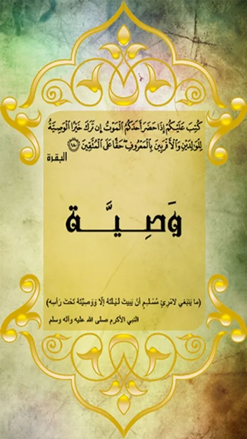كُتِبَ عَلَيْكُمْ إِذَا حَضَرَ أَحَدَكُمُ الْمَوْتُ إِنْ تَرَكَ خَيْرًا الْوَصِيَّةُ لِلْوَالِدَيْنِ وَالْأَقْرَبِينَ بِالْمَعْرُوفِ حَقًّا عَلَى الْمُتَّقِينَ