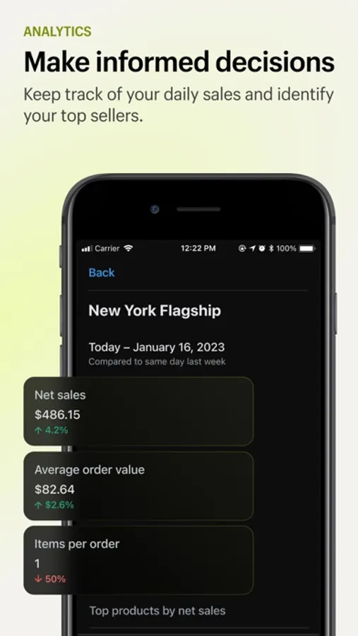 • Adapt to growing trends in your business with unified analytics that blend in-store and online sales in your Shopify admin