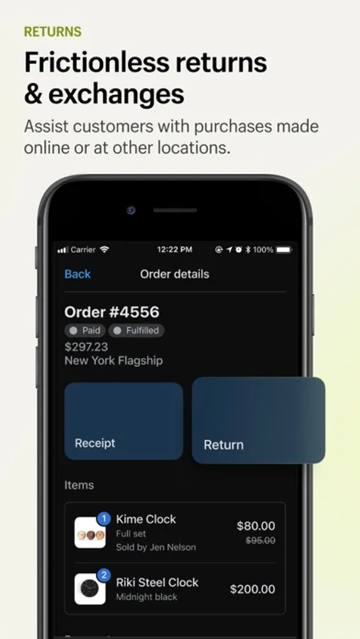 • Create fully-synced customer profiles so staff can give every customer a personal shopping experience with quick access to notes, lifetime spend, and order history.