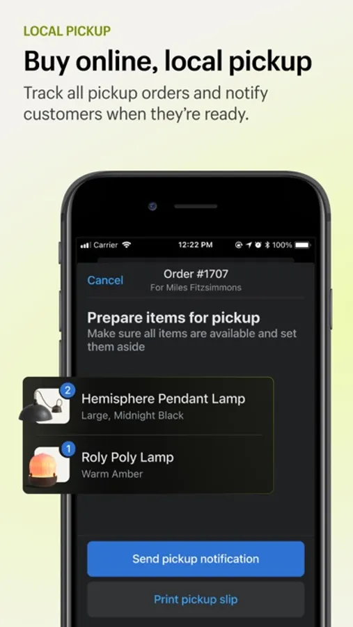 • Track all pickup orders from your online store and notify customers when they’re ready.