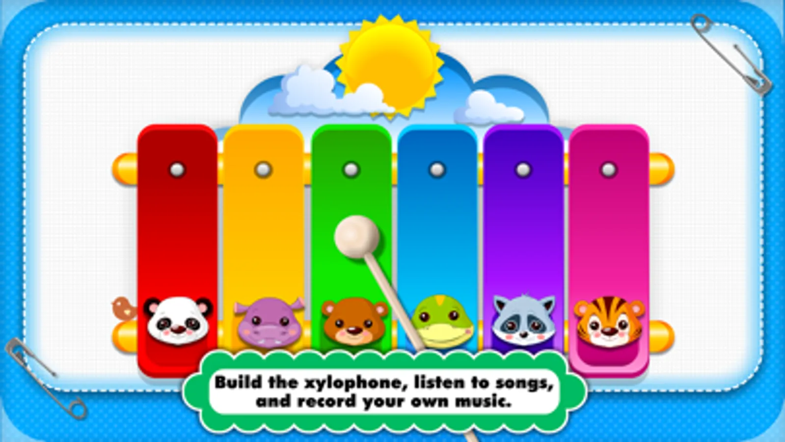Complete a xylophone puzzle. Then play the xylophone, listen to a melody, or record your own music.