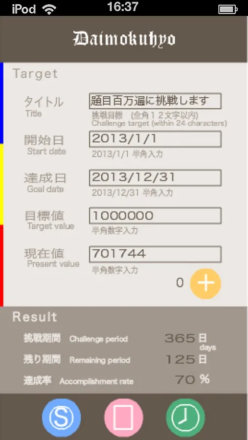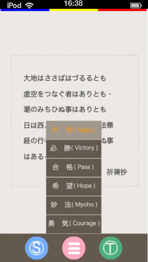 Every person has infinite ability to fulfill their hopes. Let's challenge every day with a theme for a big victory in life. This app will support your chanting until you reach your big goal with timer tool and kanji fill tool. as a feature