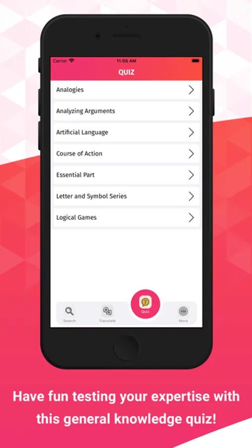 Apart from word meaning, now there are random quiz questions based on categories for which you can answer and test your skill for those categories.