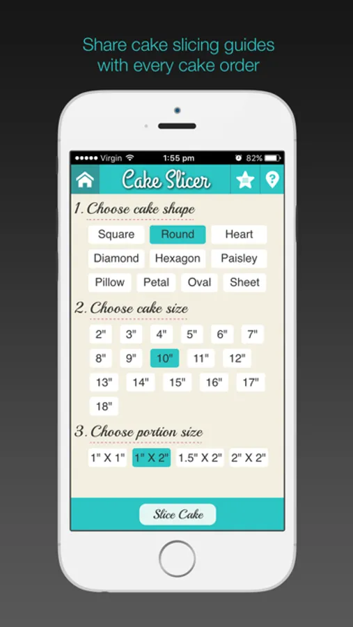 Download Cake Slicer and start sending appropriate cake cutting guides to your customers with their cake orders today!!