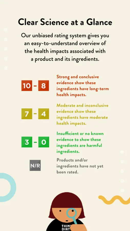 • Dirty Meter®: A comprehensive rating is given, along with detailed (but easy-to-understand) information on ingredients, certifications, and health impacts.