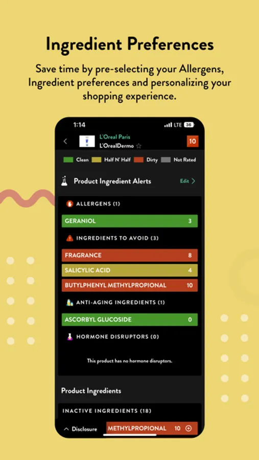 • Personalized Ingredient Preferences (Premium): Save time by pre-selecting your Allergens, Ingredient preferences and personalizing your shopping experience. Ingredient alerts will be presented if we find any flagged ingredients in the products you viewed.