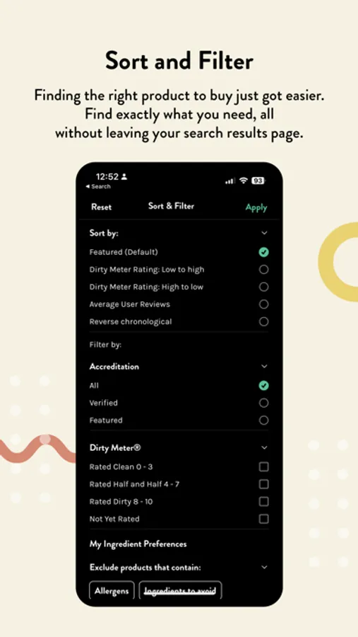 • Search by Curated Categories (Premium Feature): Unlock to access our curated specialty lists such as Mineral Sunscreens, SLES-Free Skincare, Vegan Makeup