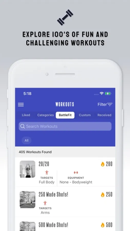 BattleFit is working out with a twist. It is based on challenging one or more players at any type of workout you wish. We preload the app with 100+ pre-defined workouts, however it is not limited to just these workouts. We give you the ability to create your own workouts so that you don't feel held back by what we have to offer.