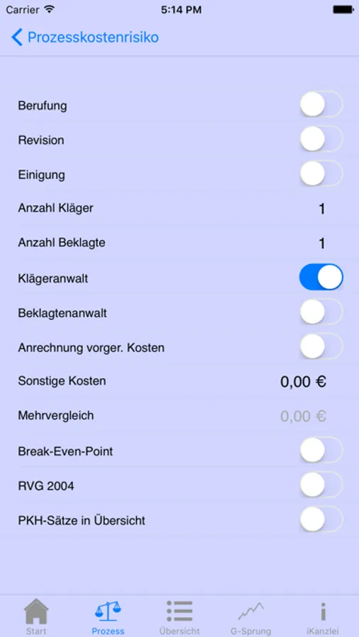 iKanzlei ist ein Prozess- und Honorarrechner für den Zivilprozess und den Arbeitsgerichtsprozess nach den (deutschen) Vorschriften des RVG und GKG.