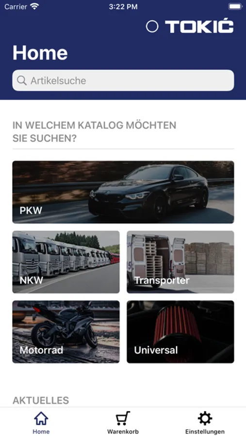 Tokic aplikacija je katalog za registrirane korisnike baziran na TECDOC podacima. Omogućava pretragu artikala odabirom vozila ili direktnom pretragom putem kataloškog, originalnog ili trgovačkog broja. Pretraga je također moguća unošenjem Tokić šifre ili barkoda, te unosom ključne riječi za univerzalne dijelove, auto kozmetiku, alate, ulja i tekućine. Registrirani korisnici imaju putem Tokić aplikacije uvid u cijene i dostupnost artikala, te odabrane artikle mogu i naručiti.