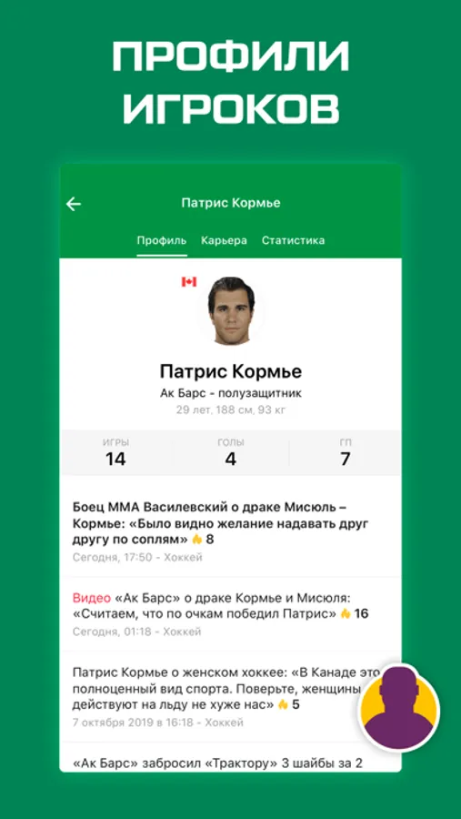 Sports.ru – все о хоккейном клубе Ак Барс – лучшее неофициальное приложение для поклонников команды из Казани. Результаты и календарь матчей, текстовые онлайн-трансляции, новости и видео - все о вашей команде, оперативно и подробно. Вы всегда будете в курсе происходящего в любимой команде и Континентальной Хоккейной Лиги. Следить за ХК Ак Барс еще никогда не было настолько удобно.