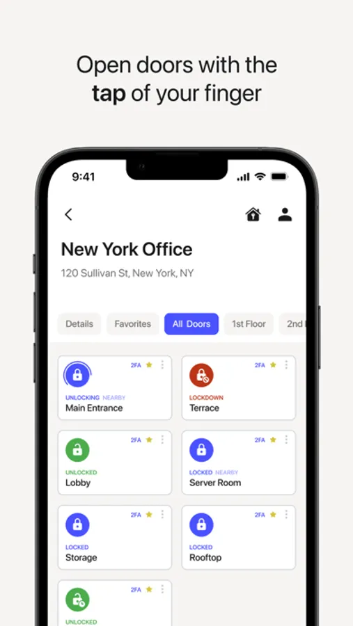 - See the list of the doors you have access to and unlock them from the app