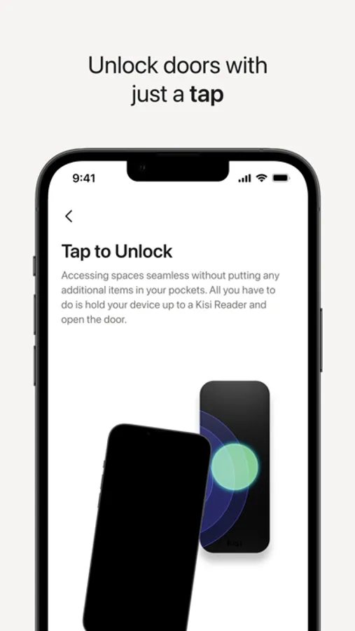 - Tap-to-unlock*: open a door by holding your iPhone up to a Kisi Reader