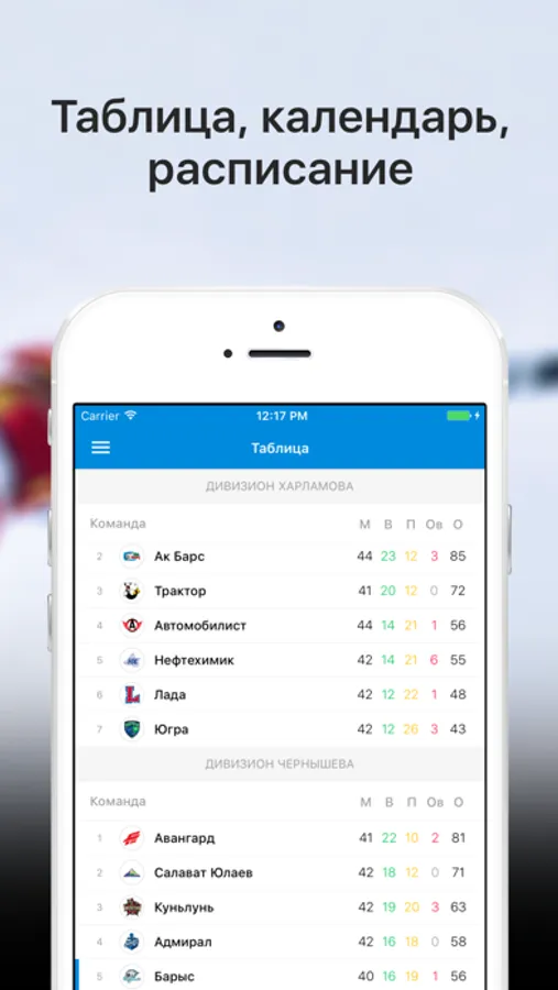 • Текстовые трансляции матчей, календарь и таблица КХЛ;