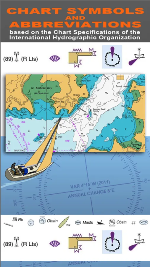 This app is based on the United Kingdom Hydrographic Office's print publication "Chart 5011 (INT 1) EDITION 2" Admiralty Charts Publication and "Chart No.1 United States of America Nautical Chart Symbols, Abbreviations and Terms".