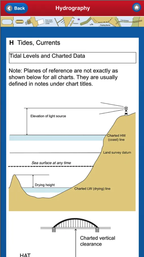 HYDROGRAPHY - tides, currents, depths, nature of the seabed, underwater obstructions, tracks, areas, limits and hydrographic terms.