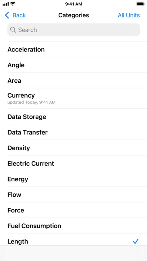- Easy searching for units and categories.